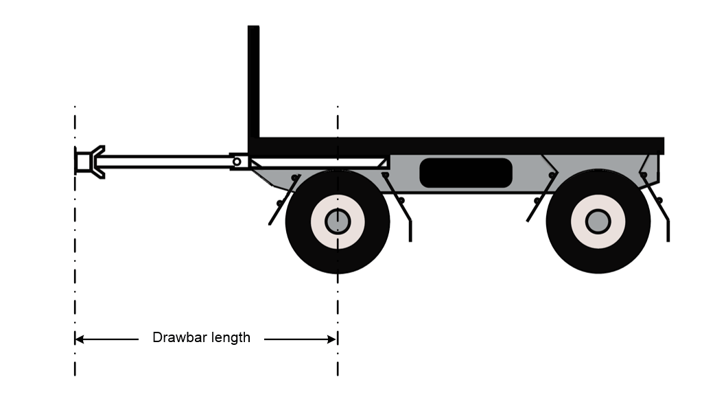 (b) the steering axle or axle group of a dog trailer and the body of the trailer, or